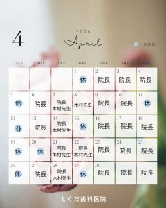4月の診療日のお知らせです。